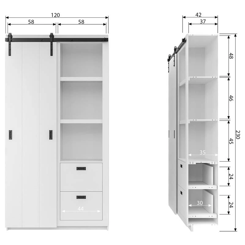 - Dimensions intérieures du tiroir : 44 x 24 x 30 cm chaque