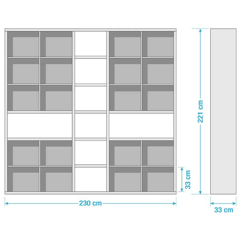- Autres dimensions : Hauteur des compartiments ouverts : 32,9 cm