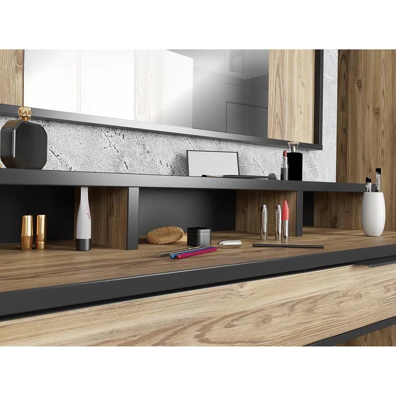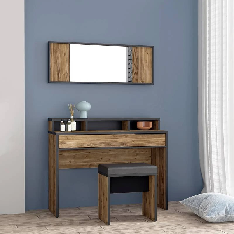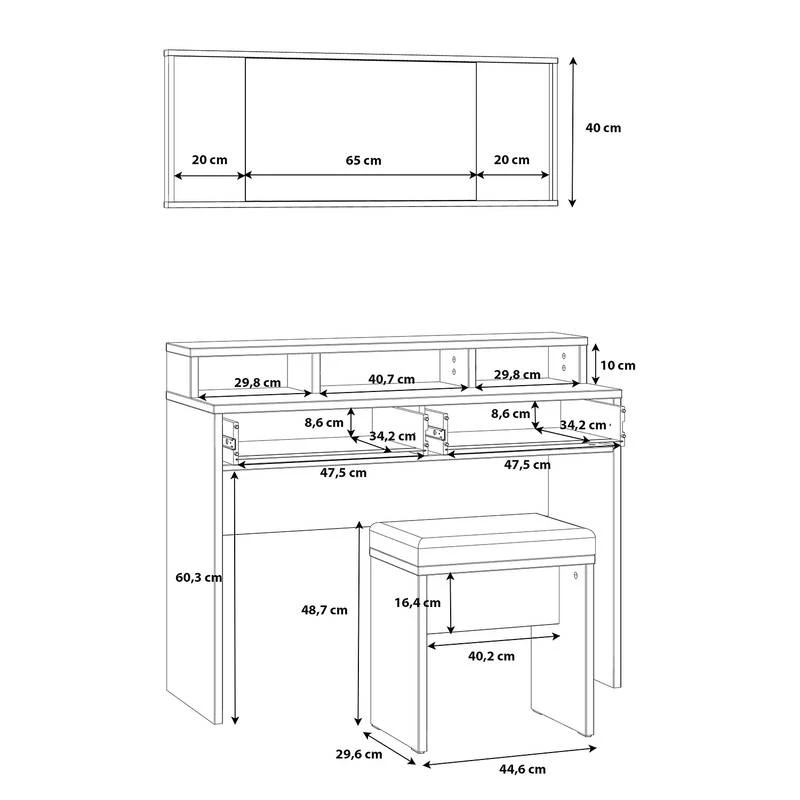 - Contenu de la livraison : Ensemble comprenant 1 miroir, 1 coiffeuse et 1 tabouret, sans accessoires