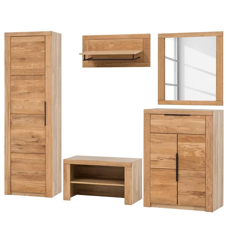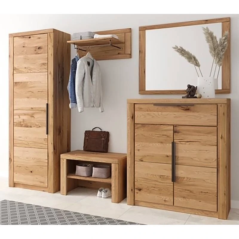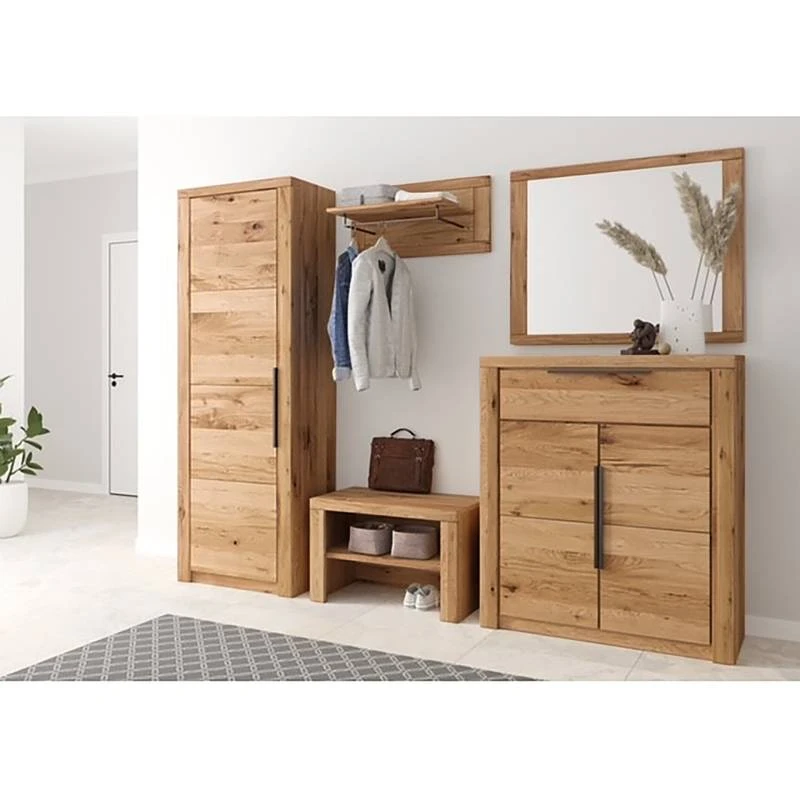 - Contenu de la livraison : Ensemble d’entrée comprenant 1 armoire, 1 banc, 1 porte-manteau mural, 1 miroir et 1 commode, sans accessoires