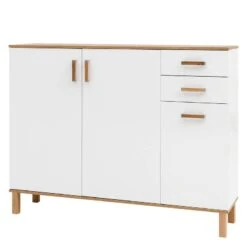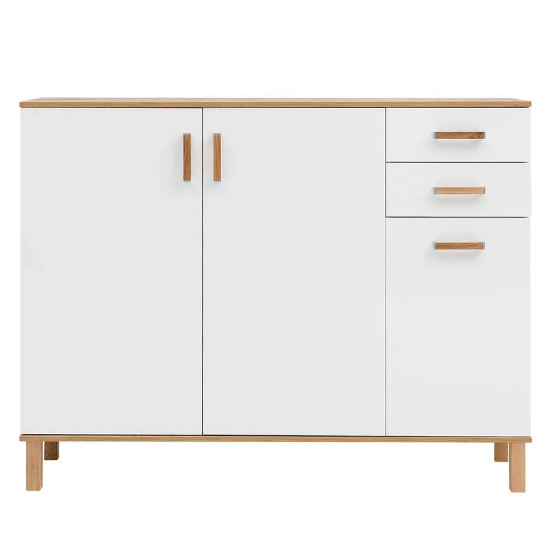 - Éléments décoratifs, poignées et pieds : chêne