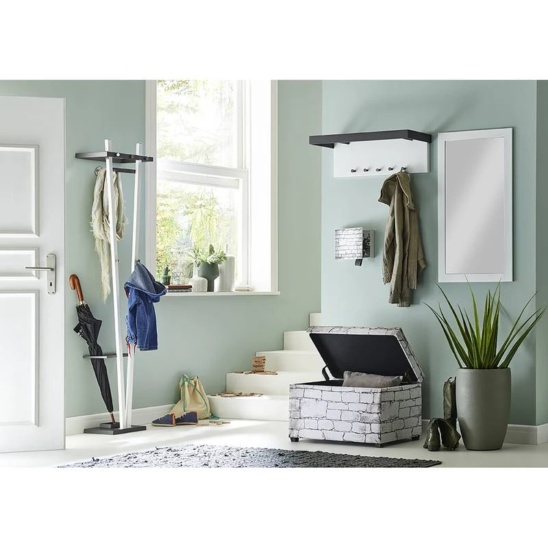 - Structure, Tringle à vêtement & porte-parapluies : métal enduit par poudrage