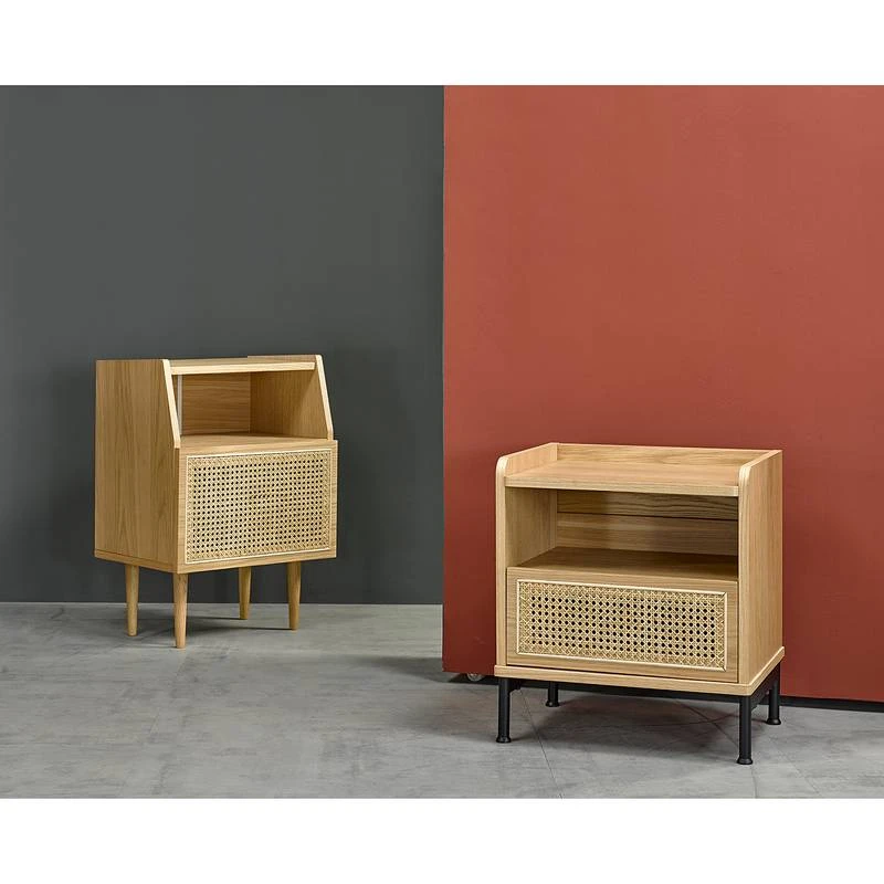 - placage de chĂŞne et rotin